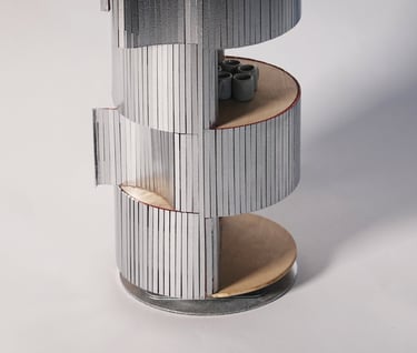 A shelf, a column or a standing sculpture, roll shelf activates the home under different scenarios and use settings.